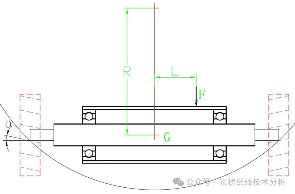 辊轮摆动部分的自重G * 相当大的轨迹半径R = 原纸左右侧的张力差F * 等效力臂L
